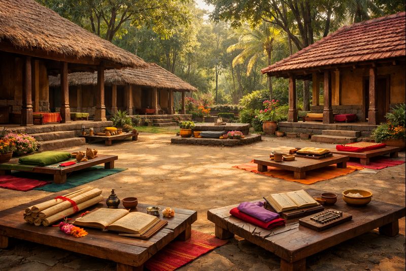 Learning rooted in the Guru–Śiṣya Paramparā, where knowledge is transmitted through close guidance, oral instruction, and lived practice.